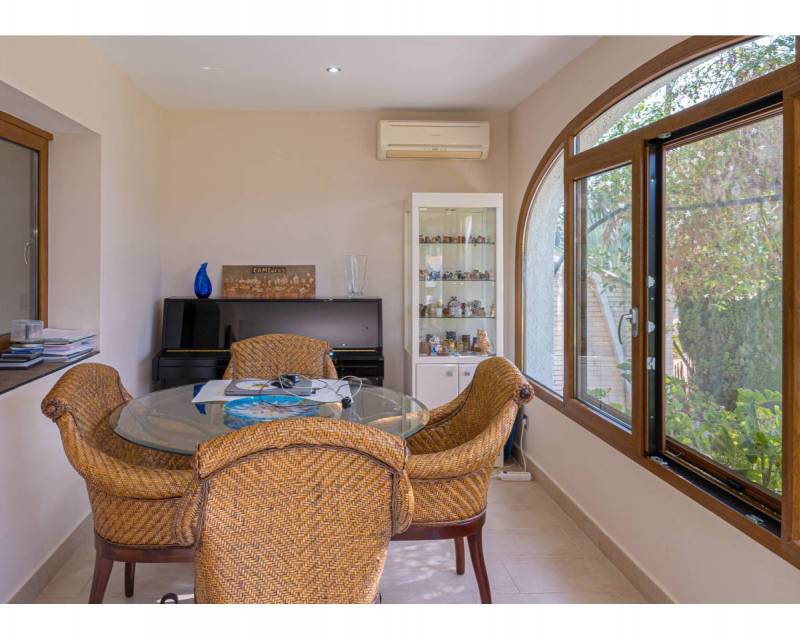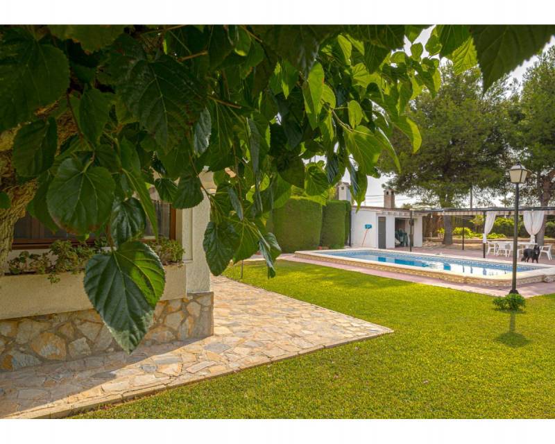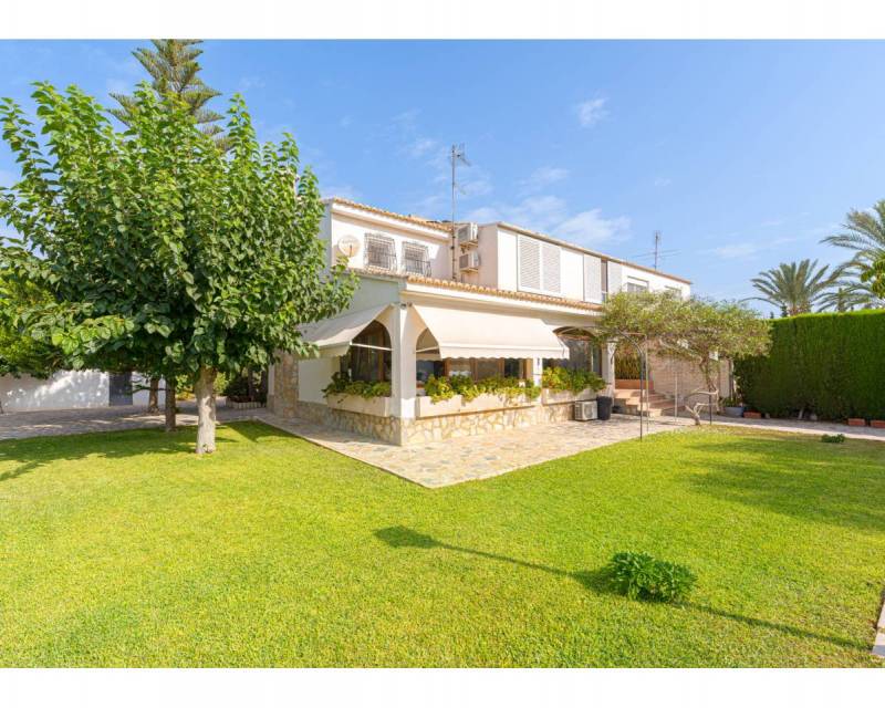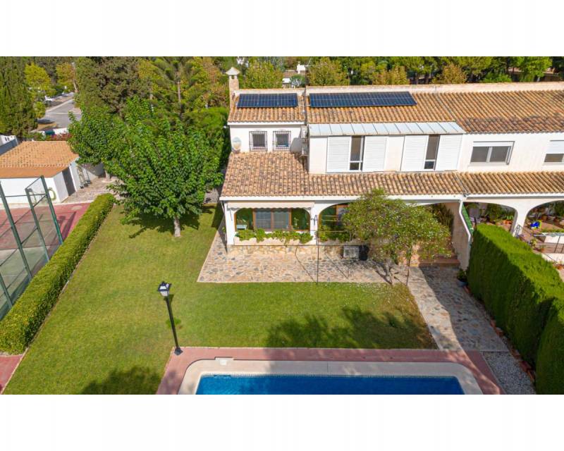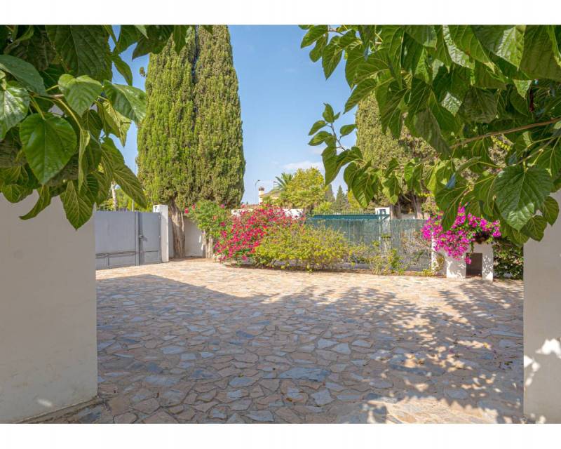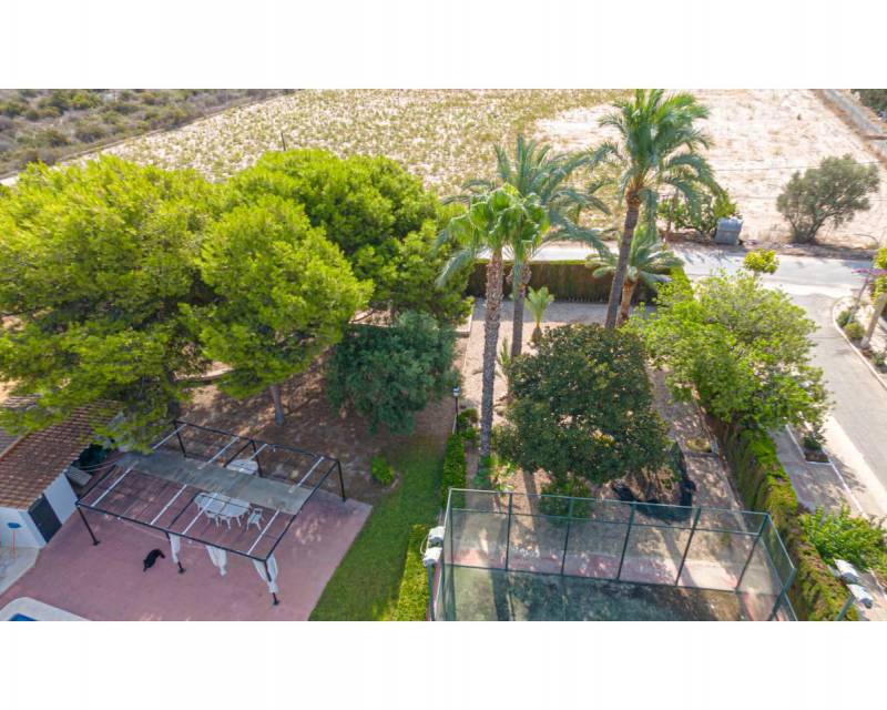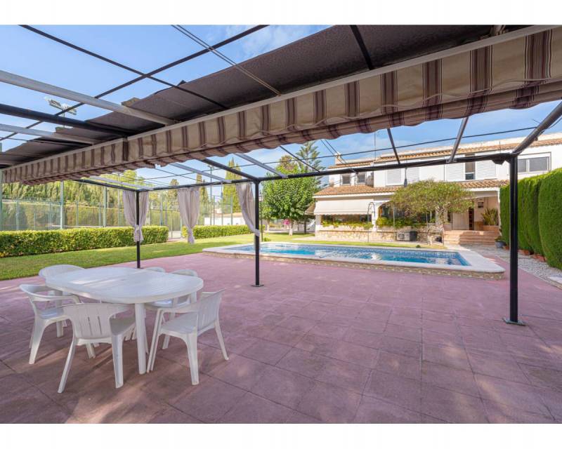 Ubicado en una zona tranquila pero a solo 5 minutos de todos los servicios y a 5 minutos a pie a la parada del Tram, este maravilloso chalet de dos plantas y reformado, cuenta con una parcela de 2.400 m² en la cual, además del magnífico jardín, hay una zona de parking cubierto para 4 coches, piscina privada, pista de padel y zona de barbacoa además de diversos trasteros para almacenaje. Al acceder a la vivienda a través de la puerta principal, se accede a un amplio recibidor desde el cual podemos acceder al comedor y al salón con chimenea. Desde el salón hay acceso a una amplia y luminosa terraza que está acristalada y que tiene vistas al jardín y la piscina. El salón que es muy amplio y acogedor, está en desnivel con respecto al comedor. Hay una cocina independiente con una gran despensa y desde la cocina se sale a la parte posterior de la casa donde hay una zona de lavadero. En la planta baja hay también un baño completo con ducha. Al llegar a la primera planta a través de las escaleras, se accede a un pasillo que da a los 4 dormitorios y 2 baños. Todos los dormitorios son dobles y cuentan con armarios empotrados y aparatos de aire acondicionado en cada uno de ellos. En el dormitorio principal hay un baño en suite (completo y con ducha) y hay otro baño completo que da servicio al resto de los dormitorios. El suelo de la primera planta es todo de tarima. La vivienda cuenta con calefacción por radiadores distribuidos en todas las estancias del chalet y que son alimentados con propano. EL CHALET SE ENCUENTRA EN UNA ZONA PRIVILEGIADA Y A SOLO 5 MINUTOS EN COCHE A: - Colegios - Supermercados - Centros deportivos - Playa de San Juan - Comercios y Restaurantes - Autovía - Hospital Además se encuentra a 5 minutos a pie de parada de TRAM. NO DUDE EN CONTACTAR CON NOSOTROS PARA VER ESTA ESTUPENDA VIVIENDA.
