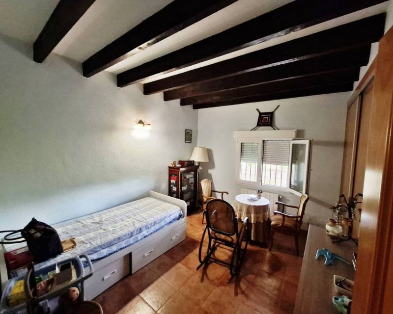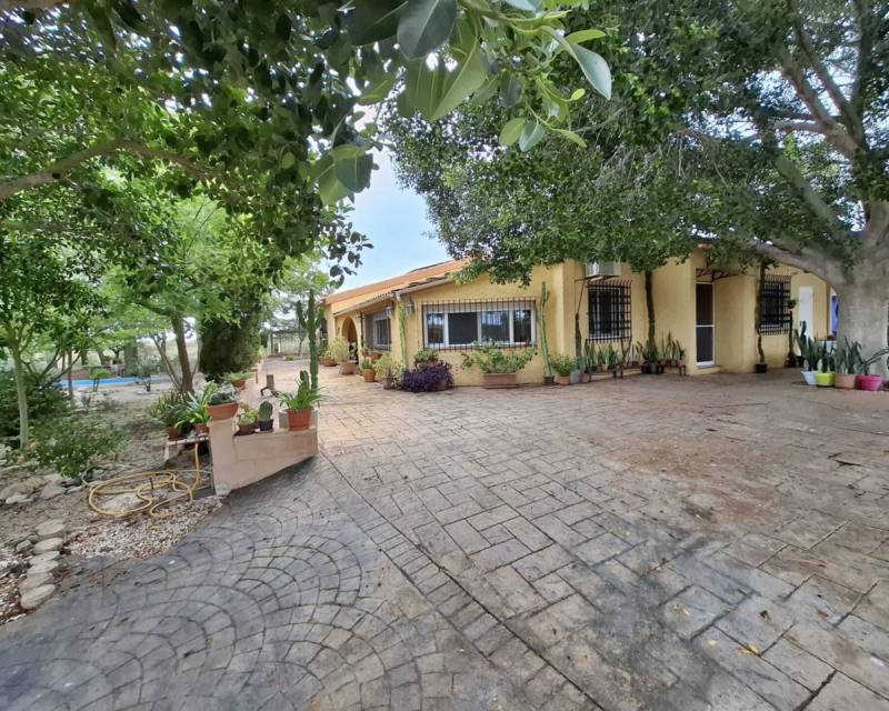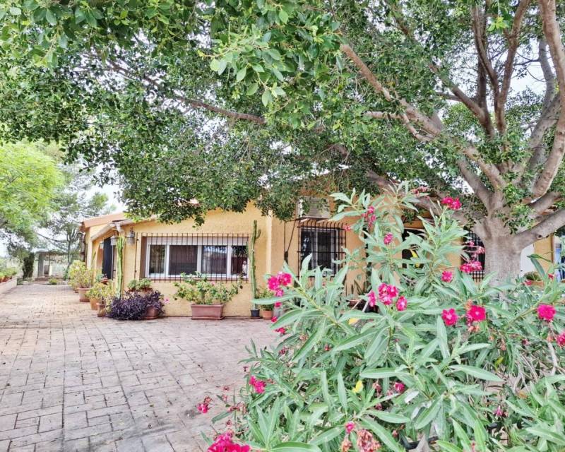 CASA DE CAMPO EN SAN VICENTE DEL RASPEIG. Este magnífico chalet de una sola planta se encuentra construido sobre un terreno completamente vallado de 8.600 m². La vivienda, de aprox. 140 m² cuenta con 4 dormitorios dobles con armarios empotrados, 2 cuartos de baño completos, cocina independiente y lavadero, amplio salón comedor con chimenea y aire acondicionado. Altillo (bohardilla) de fácil acceso para almacenaje. Aislamiento en todas las paredes y techos, ventanas de doble acristalamiento oscilo batientes. Calefacción central por radiadores con un depósito fuel de 1.000 litros. Placas solares. Aire acondicionado en el amplio comedor. Hay una zona ajardinada de 270 m² que cuenta con piscina privada con aseo exterior, una zona de aparcamiento cubierto para 2 coches y además un garaje cerrado y trastero para herramientas. Zona de barbacoa con barbacoa de obra y horno moruno de arcilla. Cuenta también con una zona de parcela abierta y libre de unos 3.400 m², pinada de 1.725 m² con 45 pinos, zona de huerta con higueras y algarrobos de unos 300 m², zona de olivos de 720 m² que cuenta con 46 olivos con riego por goteo y a manta. Zona de arboles cítricos (naranjos, limoneros y mandarinos) de 280 m² con unos 20 árboles con riego por goteo y a manta. Leñero cubierto 5 m2. Gallineros de 60 m² A 1 km del pueblo de san Vicente.