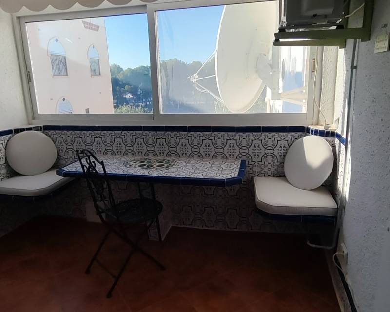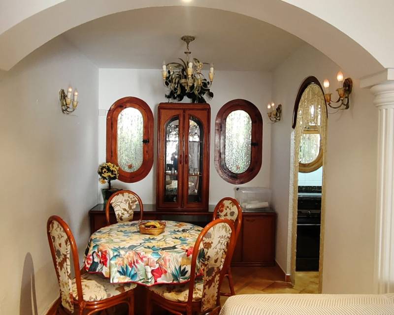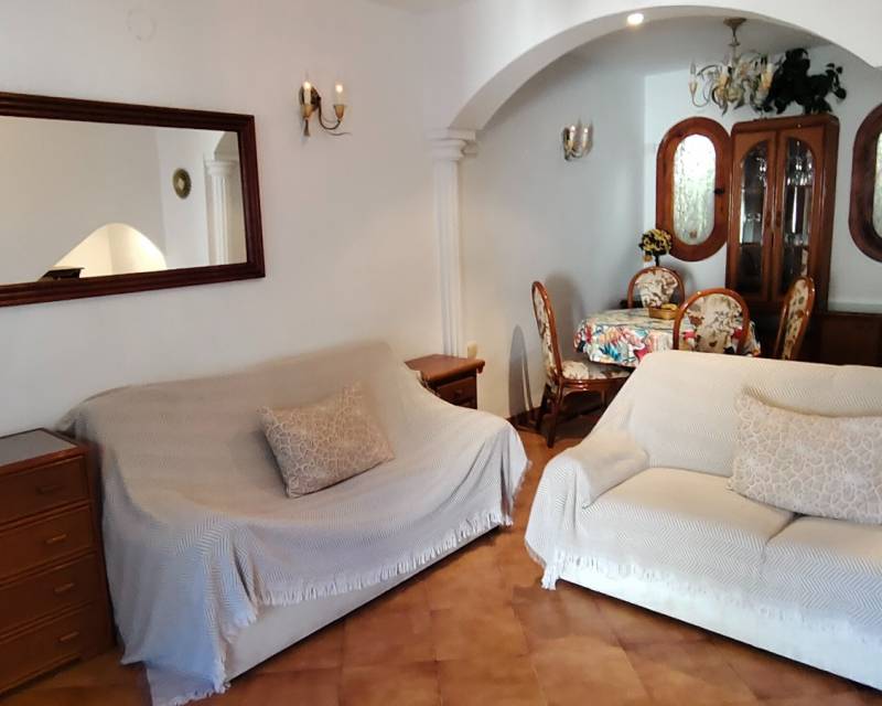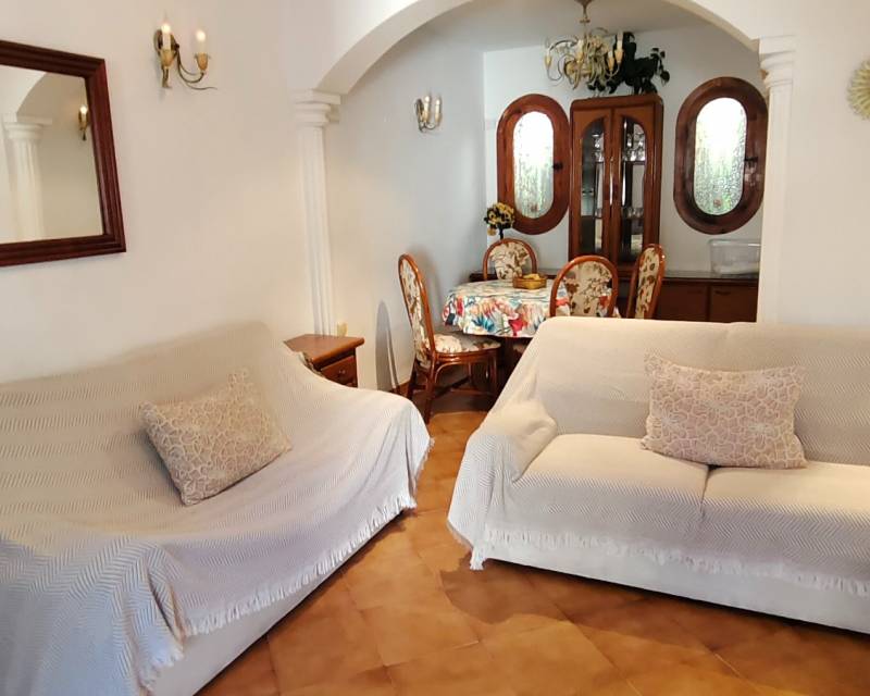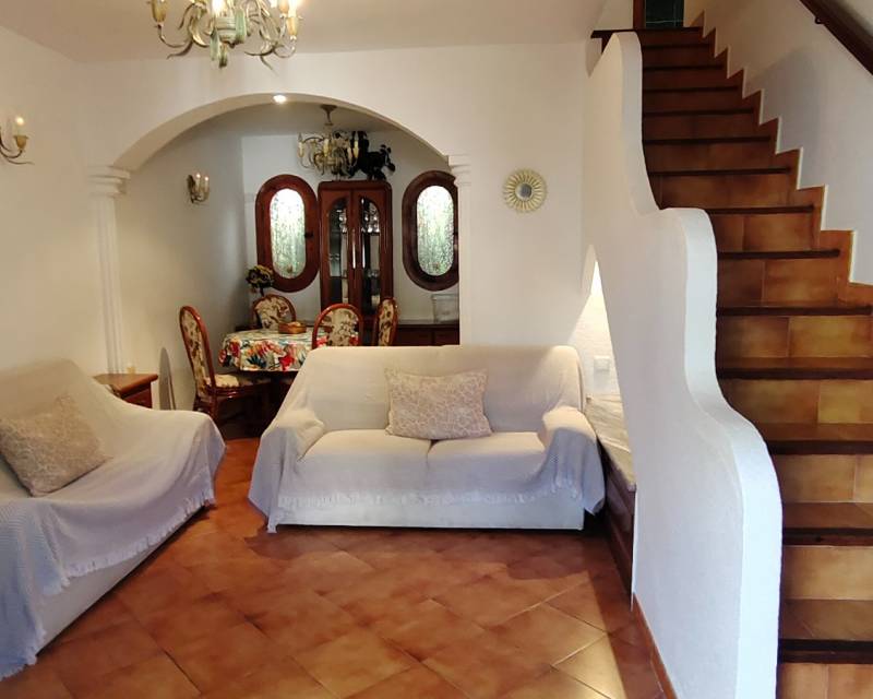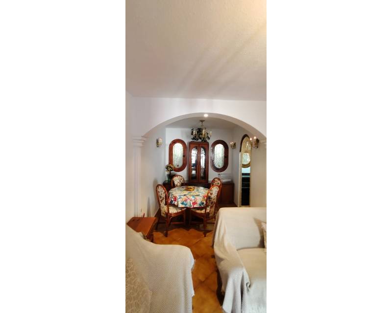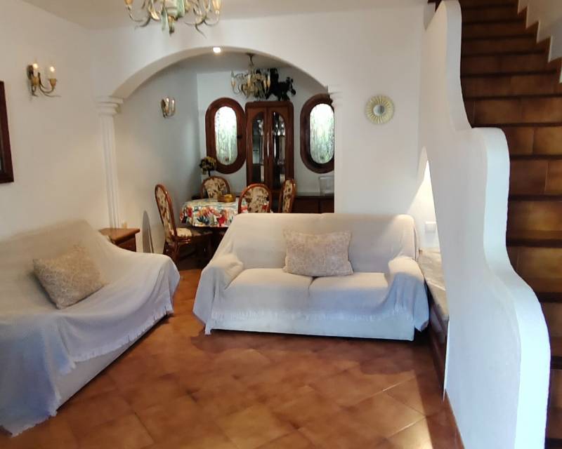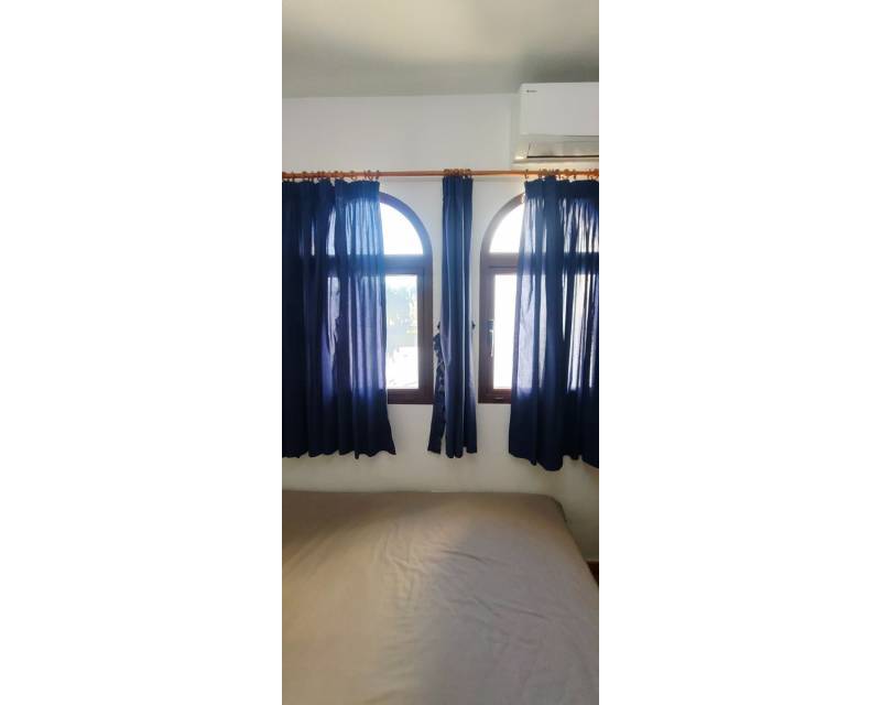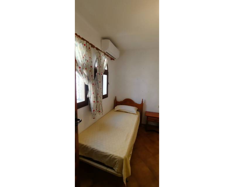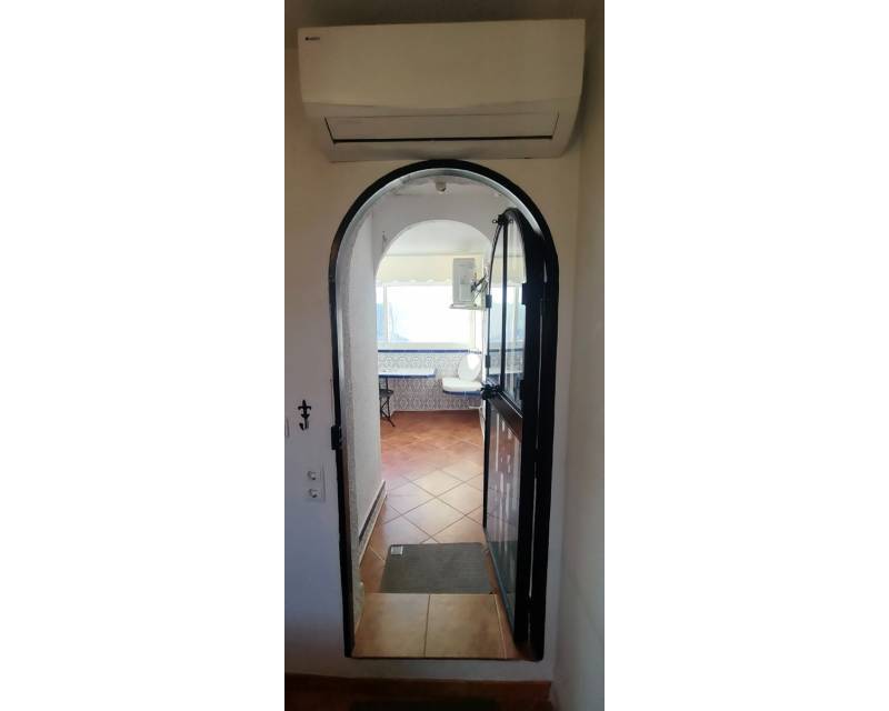 Al entrar en la propiedad, se encuentra un salón comedor diáfano y, separada, la cocina de estilo americano. Subimos las escaleras hasta el primer nivel de la propiedad, donde hay dos dormitorios con dos camas individuales y armarios empotrados, separados por un cuarto de baño con ducha. En el nivel superior se encuentra el dormitorio principal con cuarto de baño en suite. Desde el dormitorio se accede a lo que ahora es una terraza acristalada, donde los anteriores propietarios crearon una pequeña zona de cocina y una oficina. Hay aire acondicionado en los dormitorios.