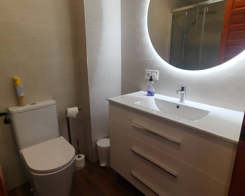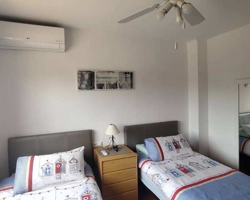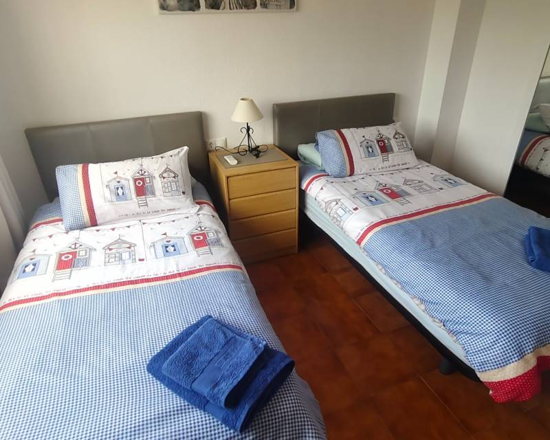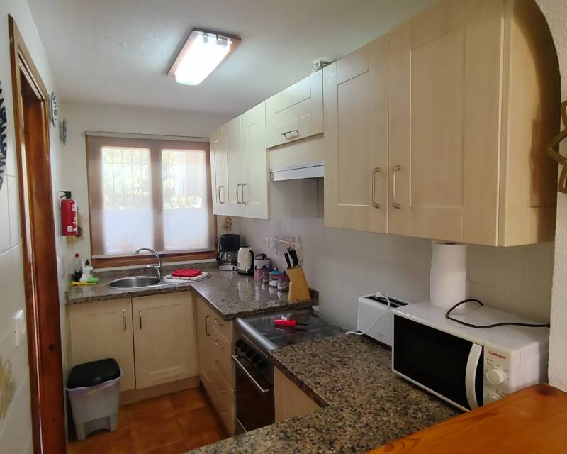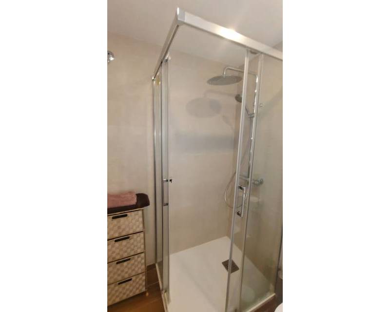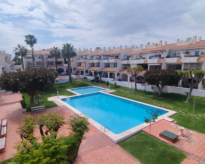Located in the tranquil and ever popular area of “Poble Espanyol” and less than 1 kilometer from El Campello main centre this very well presented property is situated in a south west orientation and offers you an entrance hallway which leads through to the beautiful kitchen with utility room, the spacious lounge with dining area, downstairs toilet room and a centre piece fire place, there is a spacious glazed in terrace which is perfect for dining or to sit and relax whilst over viewing the community swimming pool which offers a lifeguard service within the summer months. Back inside the property you have to spacious double bedrooms which are divided by the recently modernized family bathroom with walk in shower unit. The guest twin bedroom has fitted wardrobes and the main bedroom offers you free standing units along with views outside towards the communal gardens from its open balcony.