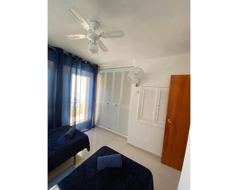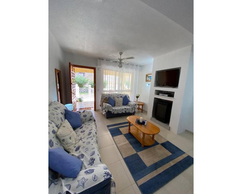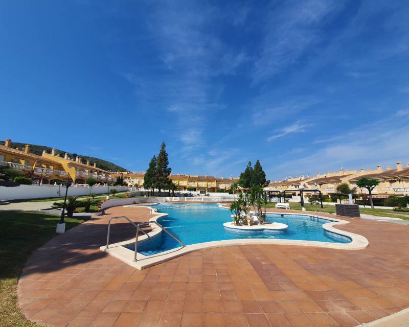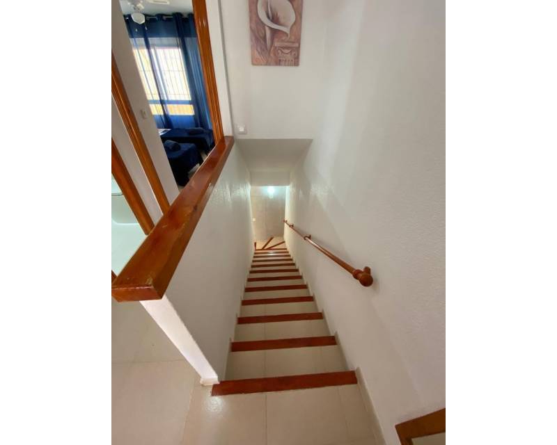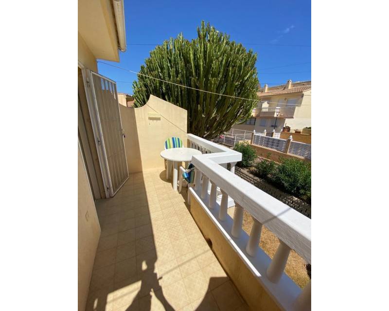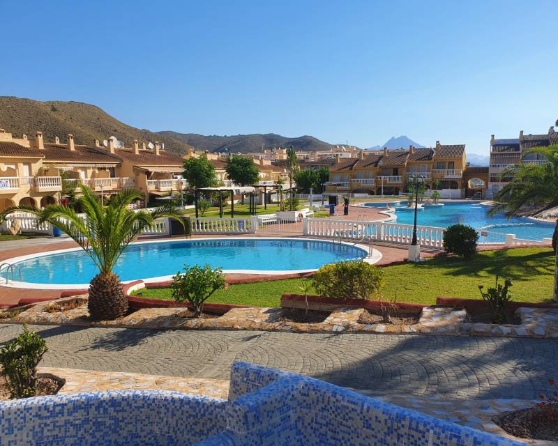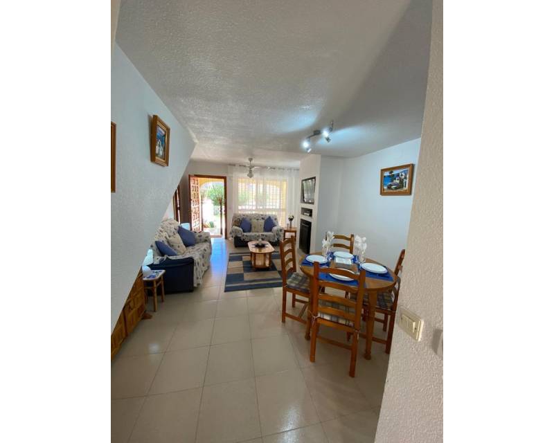 As you enter this well presented property you are greeted by a south facing patio garden which is a 2 minute walk from the swimming pool area, then once inside and on the ground floor level you have the open plan lounge, dining area, galley style kitchen, toilet and access to a rear private court yard. As you take the stairsa u to the upper floor level you have 2 double bedrooms which are divied by the famiy bathroom. Both bedrooms offer access to viewing balconies. There is communal parking surrounding the urbanization as well as in the small commercial area.