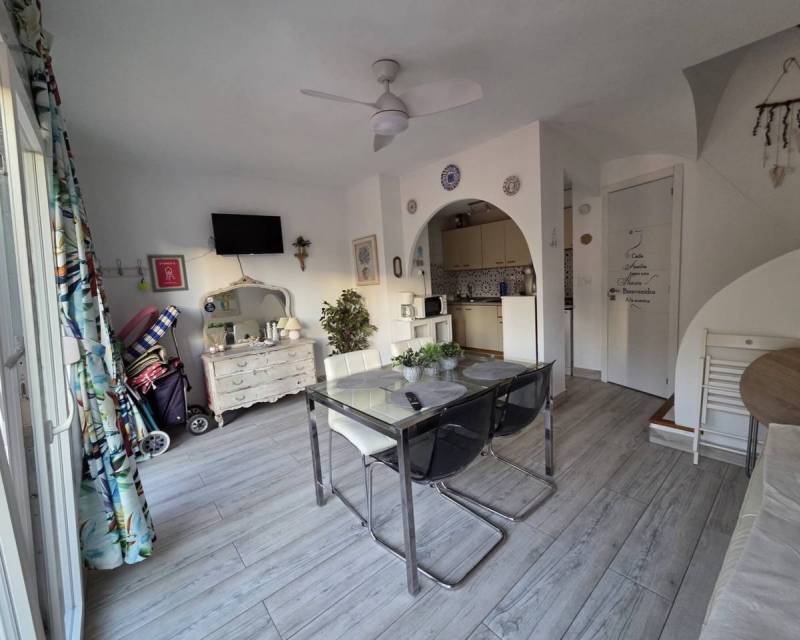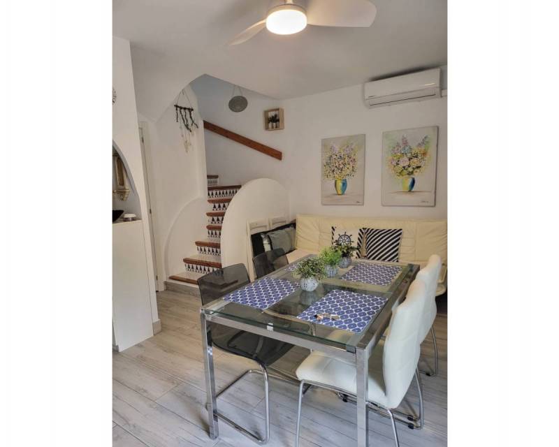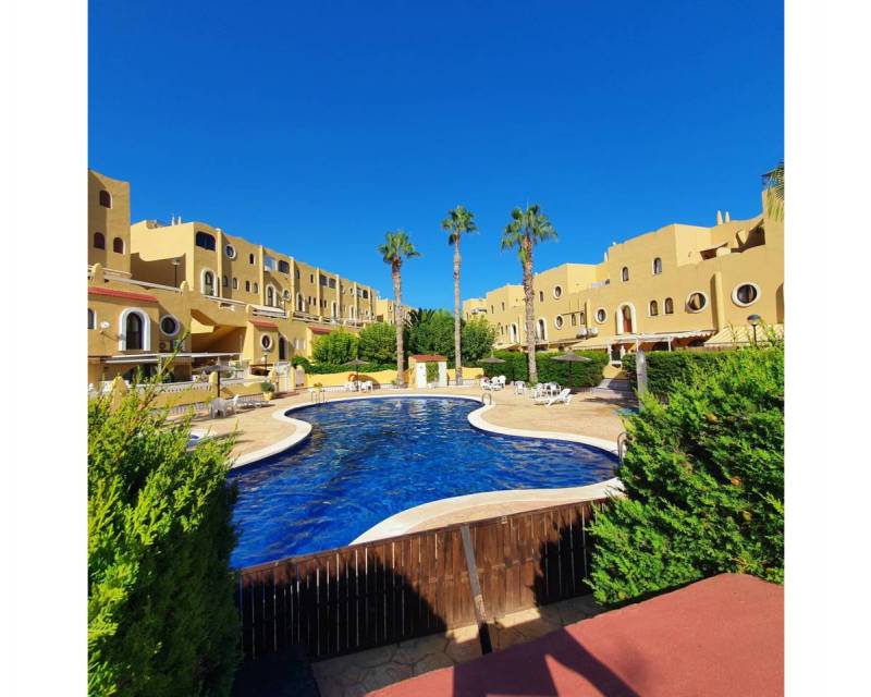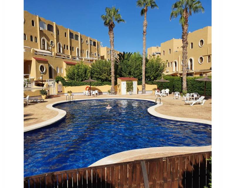 Total surface area 85 m², bungalow usable floor area 80 m², double bedrooms: 3, double bedrooms are ensuite: 1, 2 bathrooms, air conditioning (hot and cold), age between 30 and 50 years, built-in wardrobes, heating (electric), ext. woodwork (pvc), kitchen, state of repair: in good condition, community fees : between 80 and 100€ 100 por mes, garden (community), furnished, floor no.: 3, facing west, swimming pool (community), sunny, terrace, lands: stoneware, built-up (alkabir playa), pets accepted se aceptan, inner courtyard.