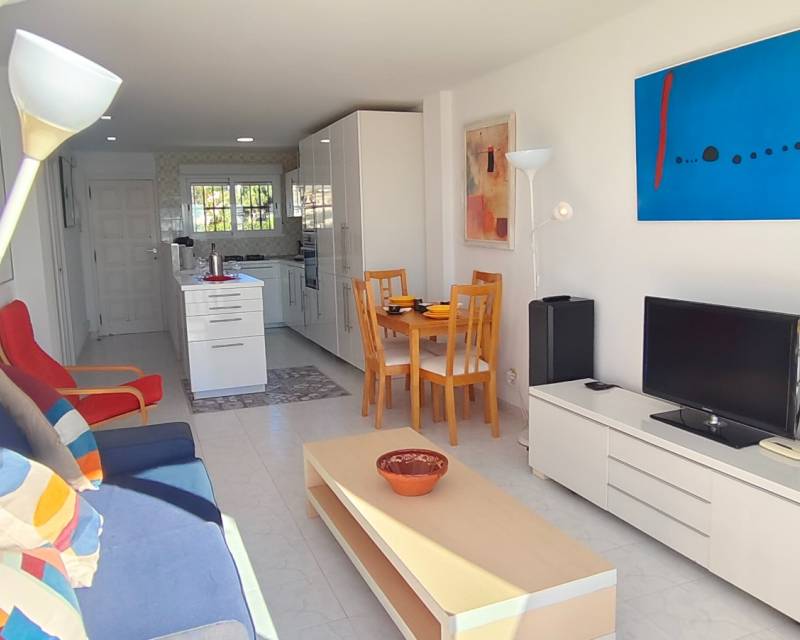 The complex is situated in an elevated position with private access down to the beach, within this gated community is a fantastic restaurant which you can take family or friends and that sits nestled alongside mature palm trees and mediterranean gardens. Just outside the community is a the hourly bus service into el Campello or less than a 5 minute stroll is the fantastic low cost and reliable tram service that runs 365 days per year and can connect you to El Campello, Alicante City, La Villajoyosa, Benidorm etc… This service runs twice per hour in both directions and you can even take the tram into Alicante City and then the C6 bus service to the airport. In and around the venta Lanuza district you have access to a variety (Spanish, Italian, Dutch etc..) café bars and restaurants along with the use of a supermarket, pharmacy and medical centre.