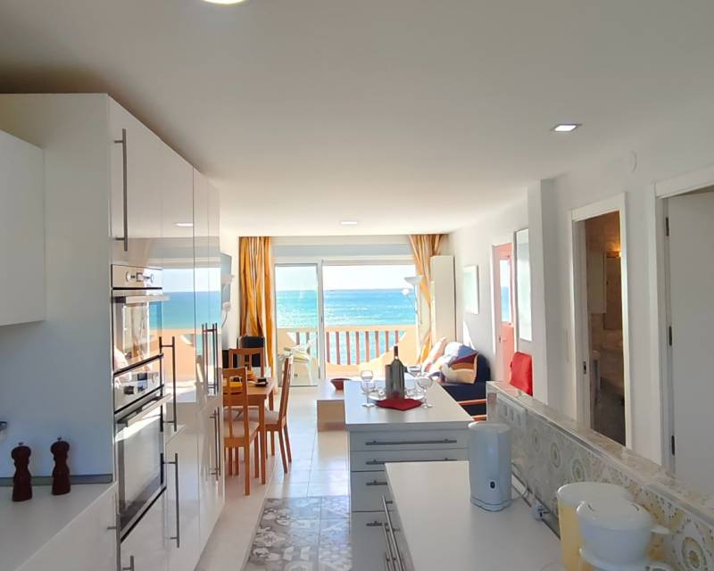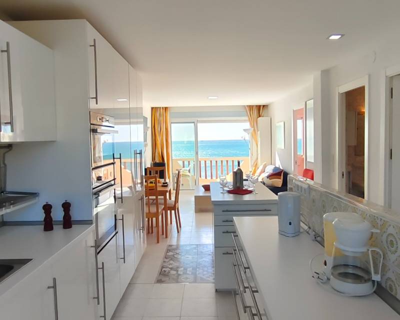 This semi reformed two bedroom top floor apartment sits offering the most beautiful views of the sea and beach. Open your eyes in a morning and you are blessed to be watching the most amazing sun rise as the sun rises out of the Mediterranean Sea and glistens across the water and straight onto your balcony so is there a better feeling than opening your doors or windows and listening to the ocean gentle washing up against the sandy beach that forms the bay of Cala Nuza, we think not so why not take this unique opportunity of purchasing this 5th floor apartment with access to an elevator as we are sure that you will not be disappointment. direct access to the beach from the complex.