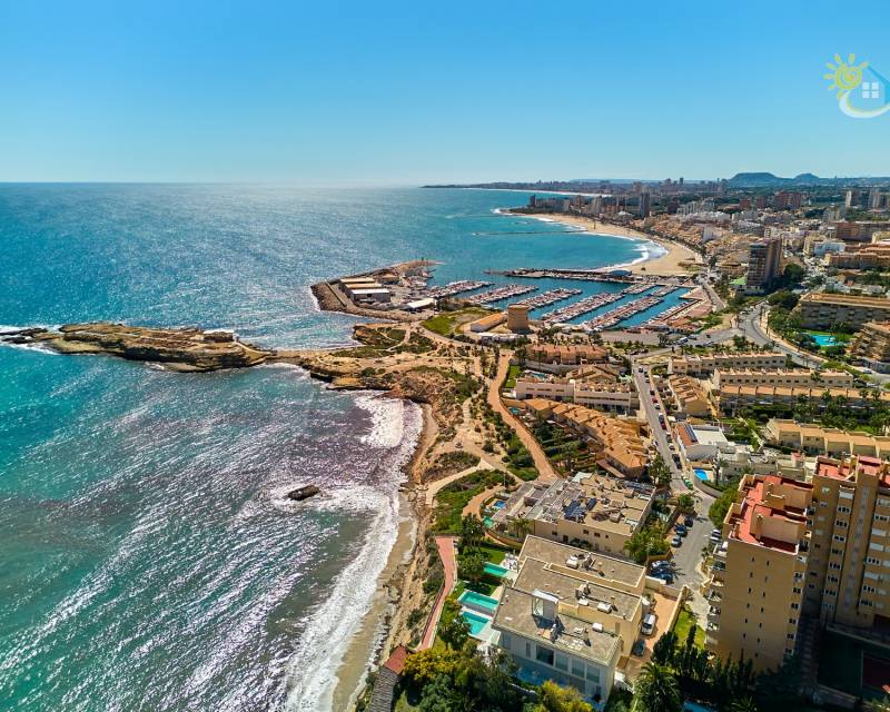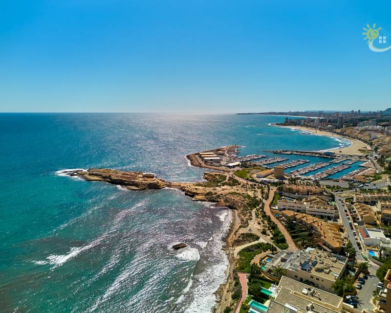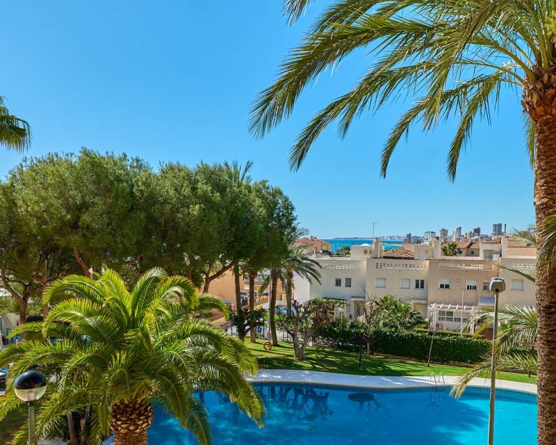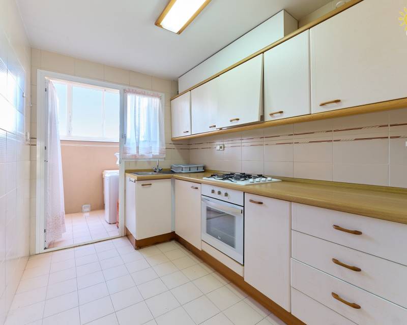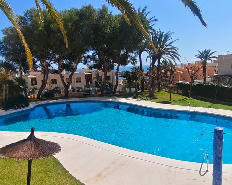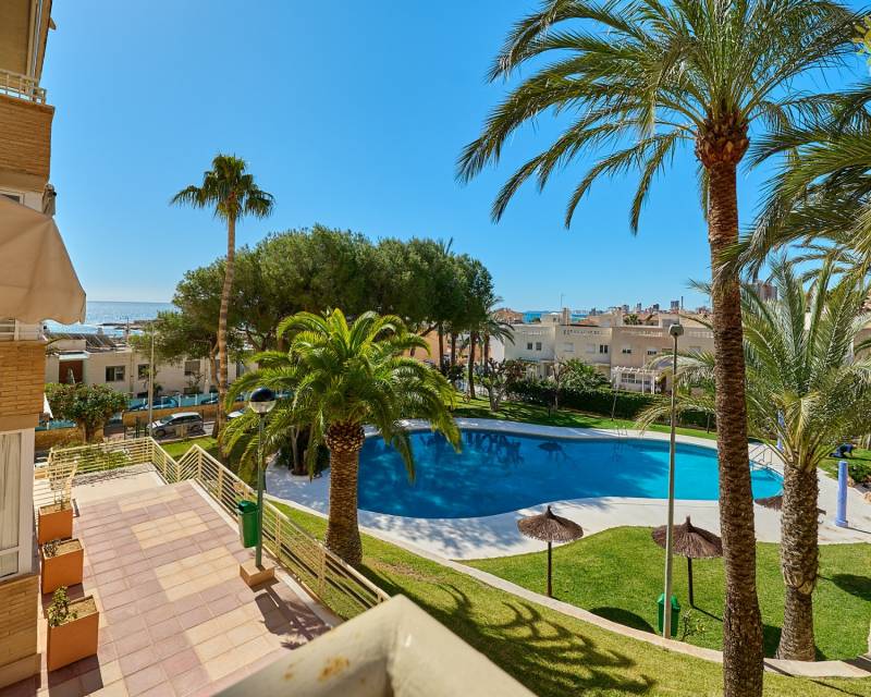 This first floor south facing apartment offers you several aspects of views of the Mediterranean sea and over views the communal swimming pool in the much sought after urbanisation of La Illeta, Pueblo Españyol, El Campello, Alicante. The mature and well maintained complex offers owners access to a communal swimming pool, children´s swimming pool and play ground, tennis court, basketball, 2 squash courts, communal gardens inclusive of a lazy river. From the grounds there is access to the beach of Voramar and take a stroll down past the marina and the famous La Lova restaurant you are on the main promenade within a ten minute walk. The bus link passes the outer edge of the complex and the fantastic tram system is a fifteen minute walk away.