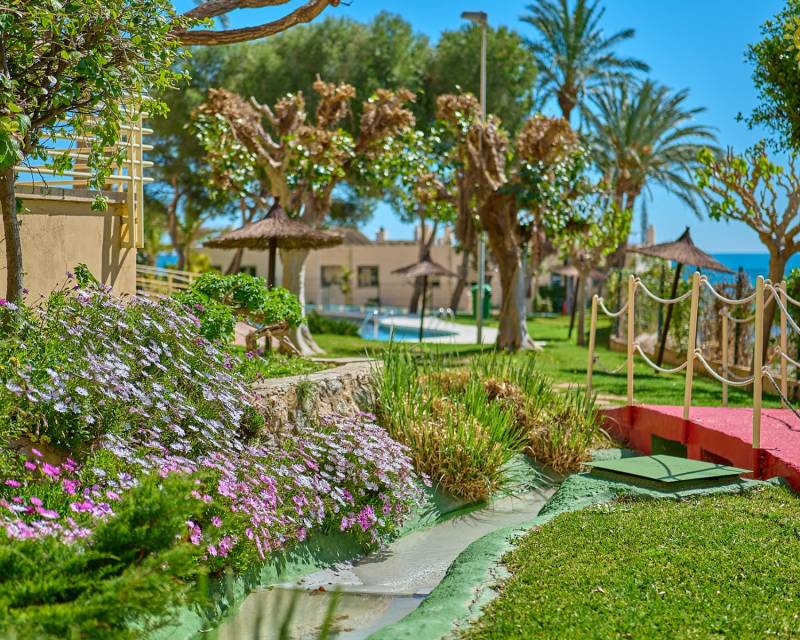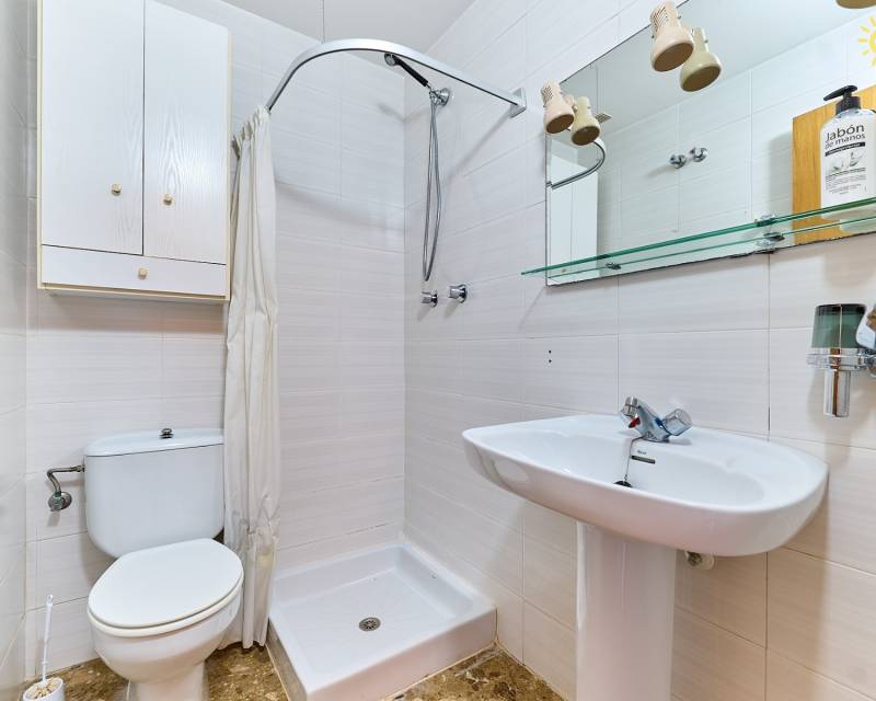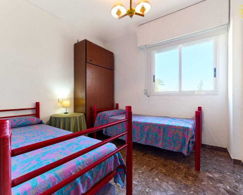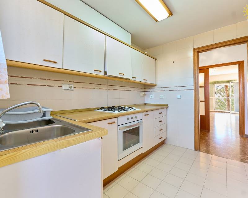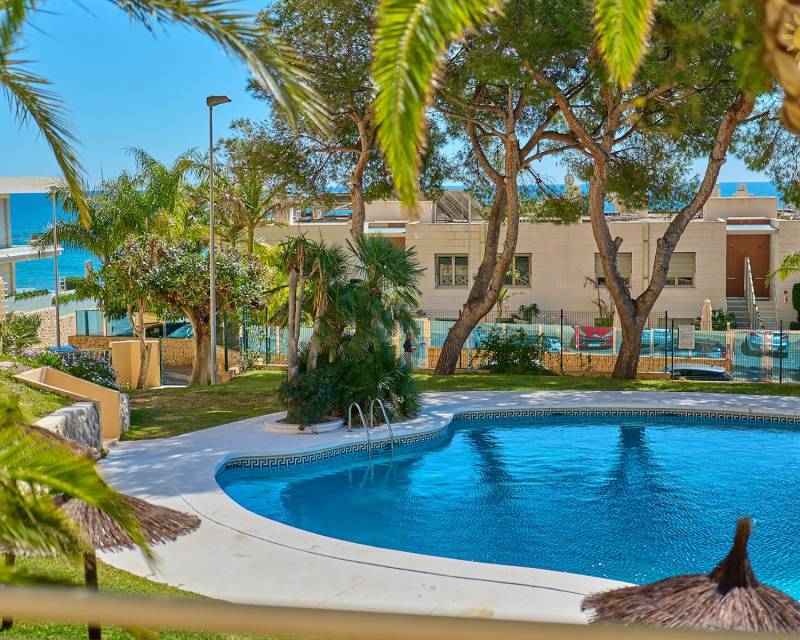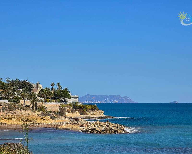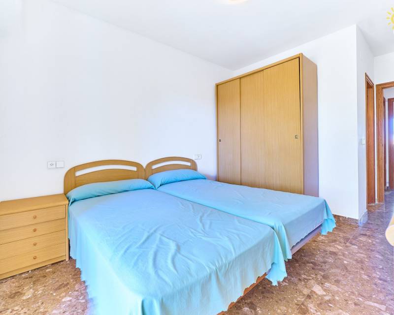 This first floor south facing apartment offers you several aspects of views of the Mediterranean sea and over views the communal swimming pool in the much sought after urbanisation of La Illeta, Pueblo Españyol, El Campello, Alicante. The mature and well maintained complex offers owners access to a communal swimming pool, children´s swimming pool and play ground, tennis court, basketball, 2 squash courts, communal gardens inclusive of a lazy river. From the grounds there is access to the beach of Voramar and take a stroll down past the marina and the famous La Lova restaurant you are on the main promenade within a ten minute walk. The bus link passes the outer edge of the complex and the fantastic tram system is a fifteen minute walk away.