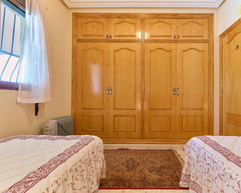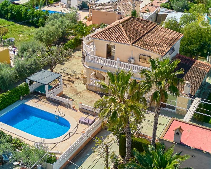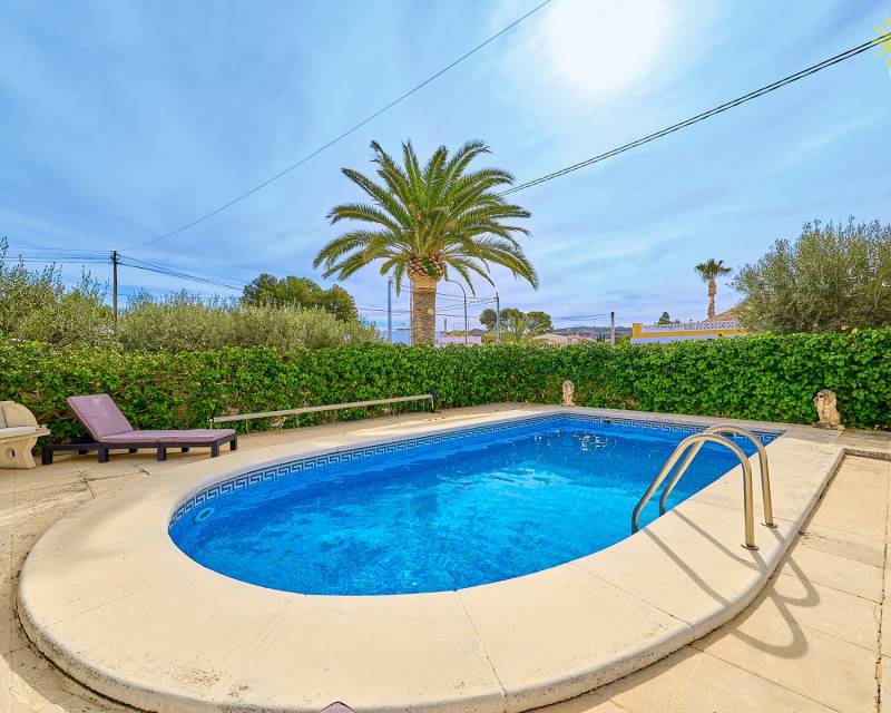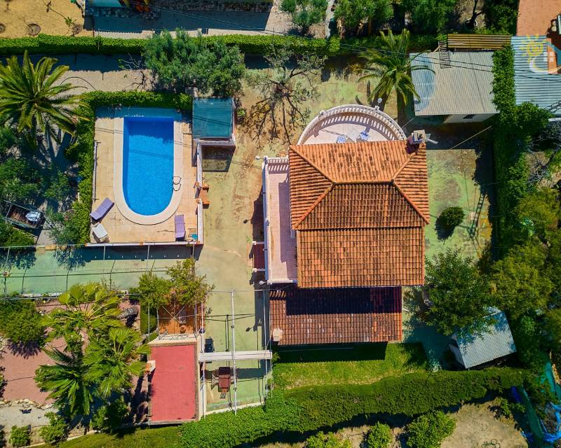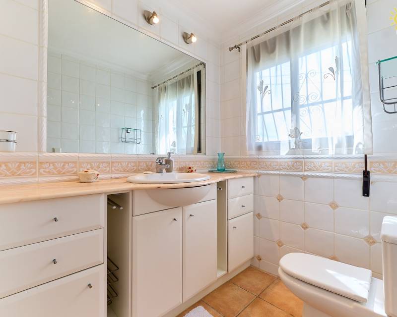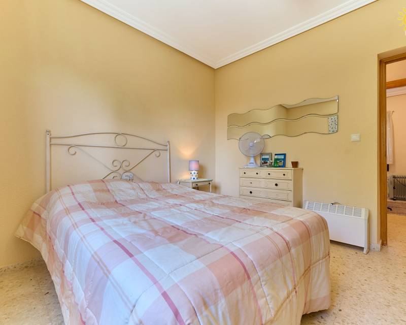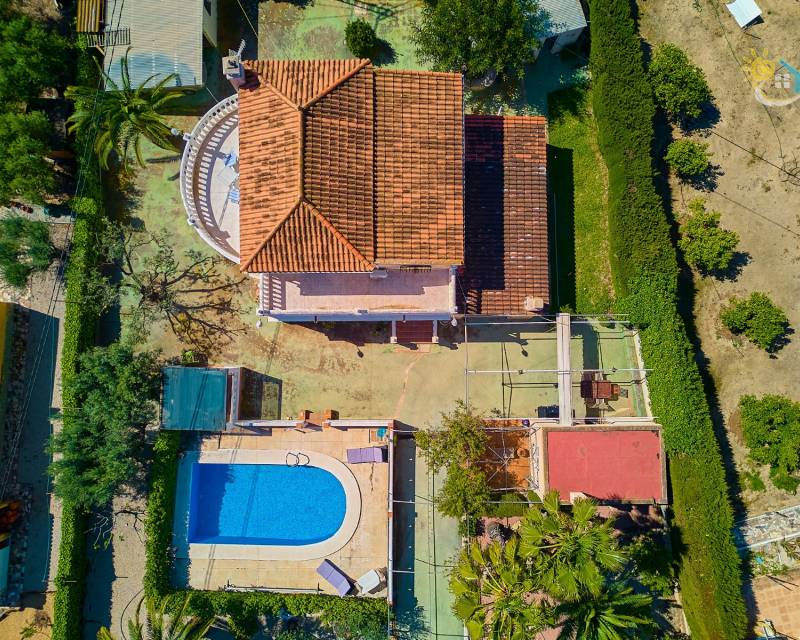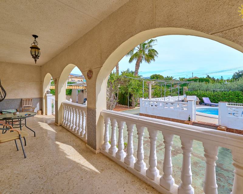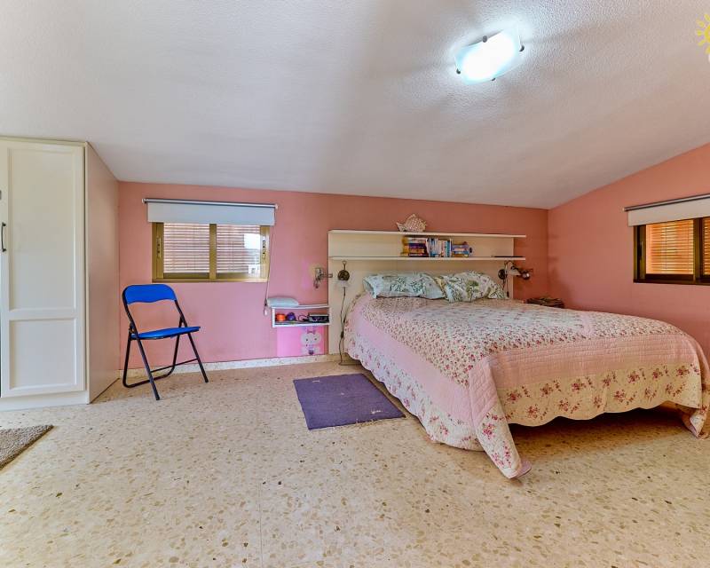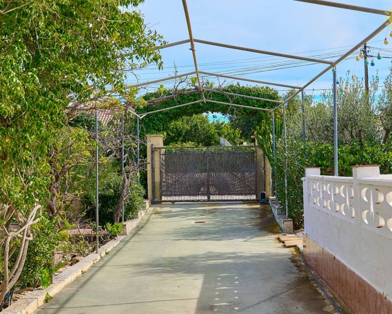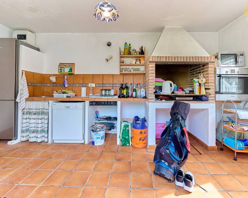 This spacious property is located in the Los Patos area of Busot which sits 3kms outside the main village. Offering you a level plot of over 1250m2 the grounds boast access to a private swimming pool, entrance drive way with parking for several vehicles, mature gardens, out houses for storage, BBQ, toilet room etc.. There is further covered parking at the rear of the property alongside a storage unit.